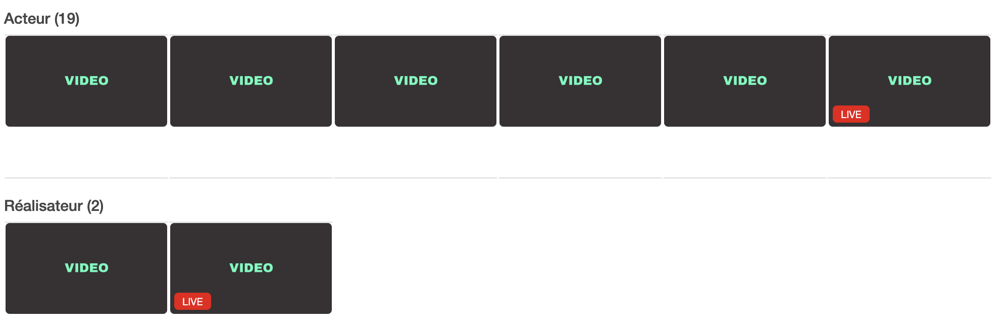 Selon les choix de design des éléments de votre plateforme > PLATEFORME > Disposition > Page Casting, différents formats de vignettes pourront être affichés.